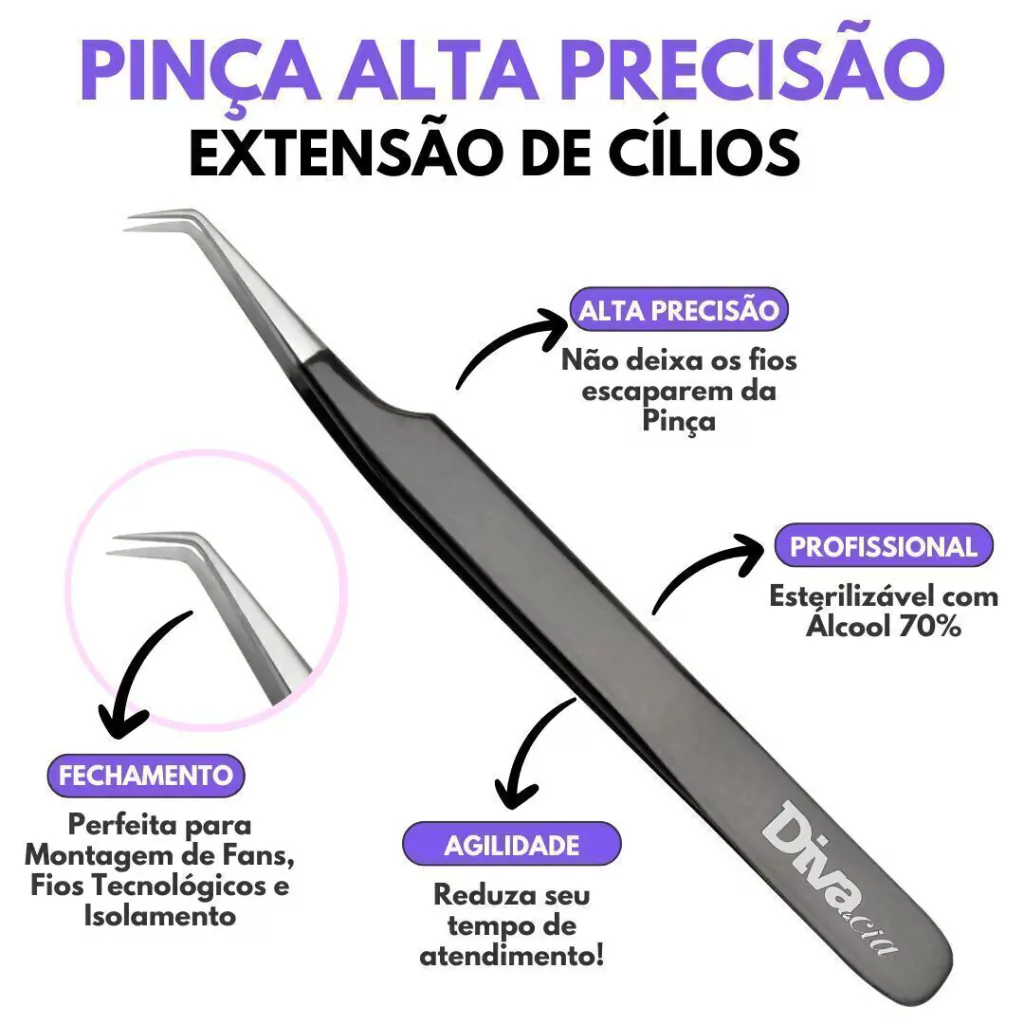 - 1 pinça ponta curva para volume russo, mega volume e fio a fio