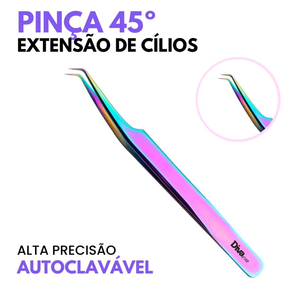 Pinça 45º para Fios Tecnológicos Autoclavável Extensão de Cílios