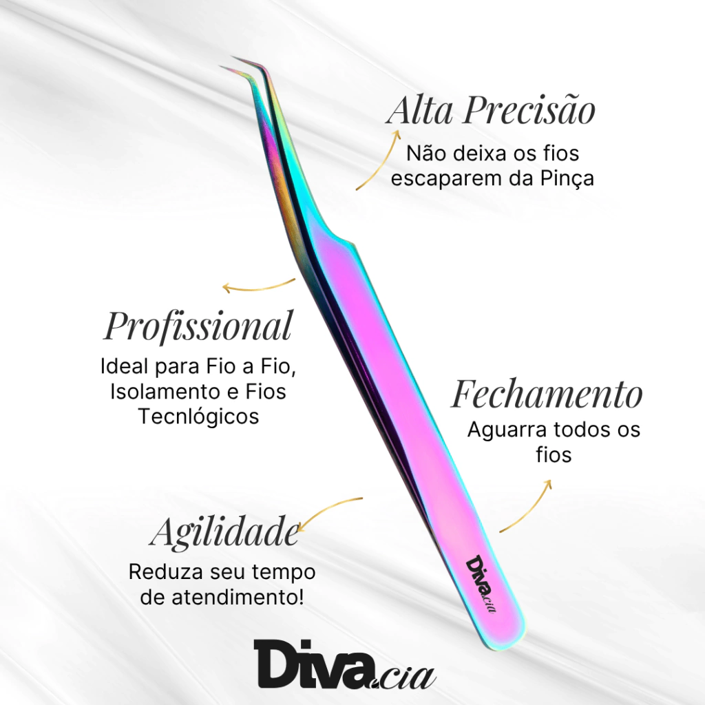 Pinça 45º p/ Fios Tecnológicos, Volume Russo e Isolamento - Extensão de Cílios