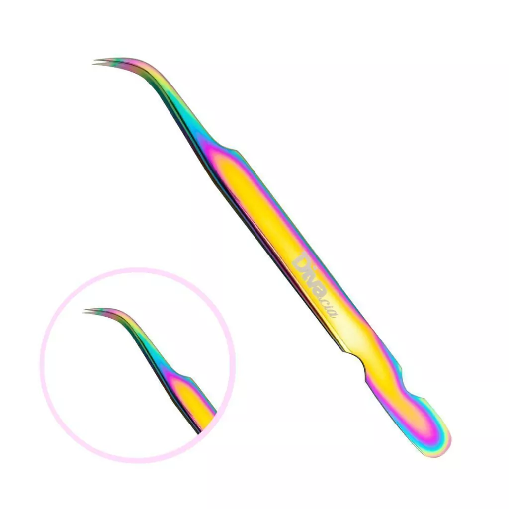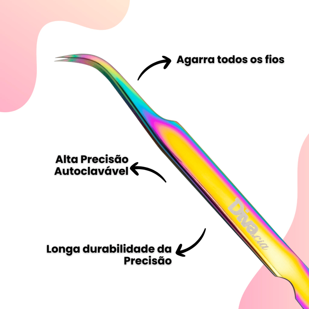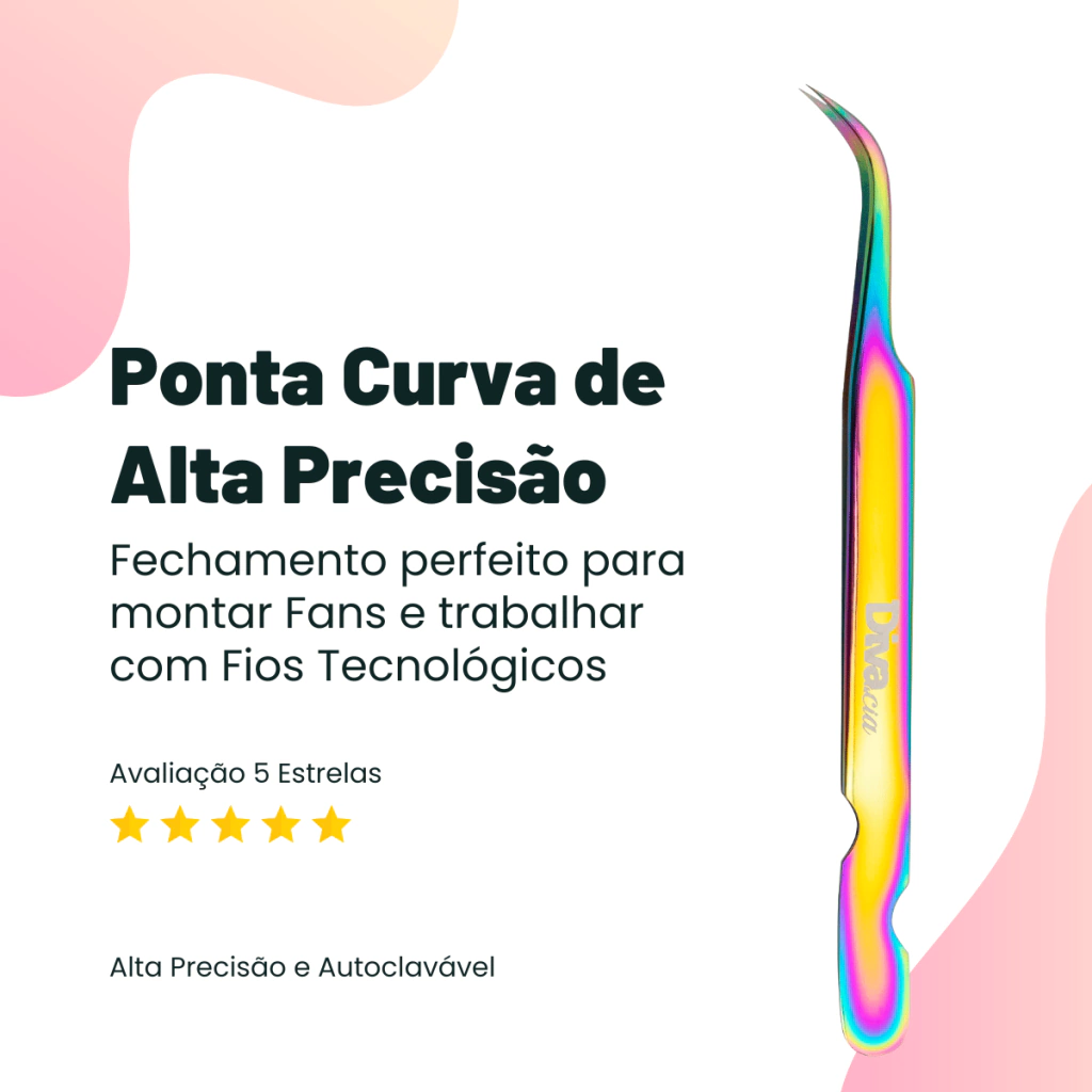Essa pinça com design arrojado e ponta curva é ideal para montagem de Fans no dedo e Chicote, com essa pinça você trabalha com Volume Russo, Mega Volume e também é perfeita para Fio a Fio! Possui 13cm de comprimento e fechamento super macio, seu formato alongado e ponta curva extrafina oferece maior precisão no momento de selecionar os fios para montagem dos fans!
