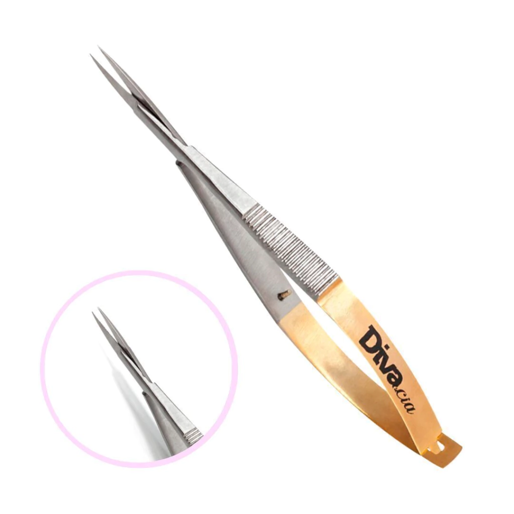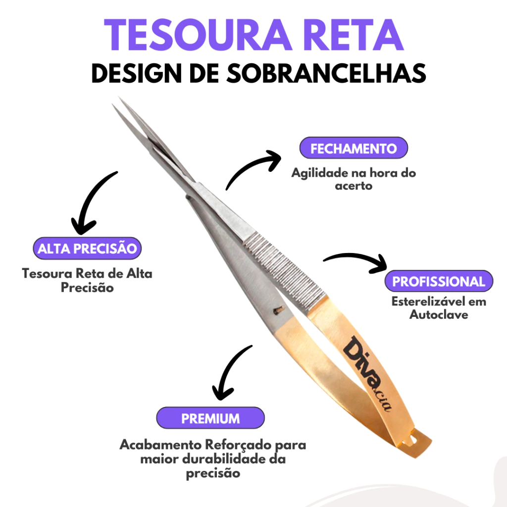 Essa é a tesoura mais usada para fazer Design de Sobrancelhas, essa tesoura de cabo flexível e corte reto possui 11,5cm de comprimento e permite que você faça cortes com o mesmo movimento utilizado nas pinças e sem a necessidade de encaixar seus dedos na tesoura a cada retoque. Com isso você ganha precisão e segurança no momento do corte pois a tesoura é super flexível, afiadíssima e responde aos seus movimentos com extrema precisão.